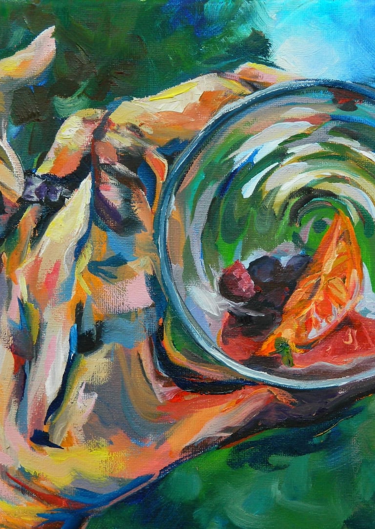 Explore vivid oil paintings and unique mosaics that celebrate bold expression.